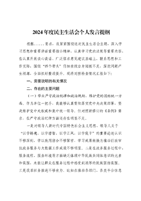 2024年审批局+民主生活会个人发言提纲(四个带头).docx