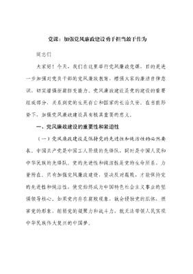 党课:加强党风廉政建设 勇于担当敢于作为.docx