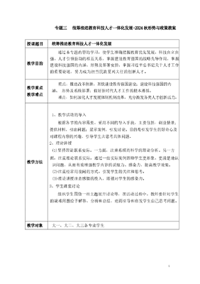 专题三统筹推进教育科技人才一体化发展-2024秋形势与政策教案 .docx