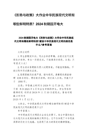 《形势与政策》大作业中华民族现代文明有哪些鲜明特质?2024秋期国开电大.docx