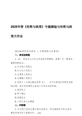 2025年春《形势与政策》专题测验与形势与政策大作业范文.pdf