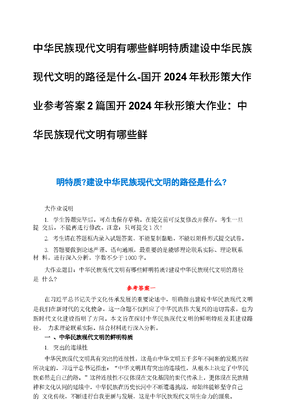 中华民族现代文明有哪些鲜明特质建设中华民族现代文明的路径是什么-国开2024年秋形策大作业参考答案2篇.docx