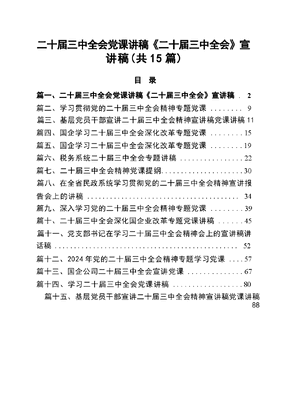 15篇二十届三中全会党课讲稿宣讲稿优选.docx