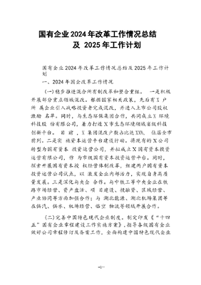 国有企业2024年改革工作情况总结及2025年工作计划.docx