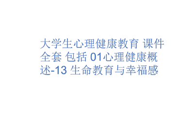大学生心理健康教育 课件全套 包括 01心理健康概述-13 生命教育与幸福感.pdf
