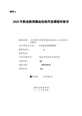 精品课申报书范例《毛泽东思想和中国特色社会主义理论体系概论》精品在线课程申报书课件.docx
