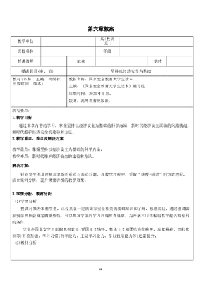 国家安全教育大学生读本教案第六章 坚持以经济安全为基础.docx