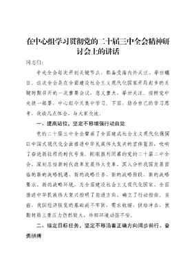 在中心组学习贯彻党的二十届三中全会精神研讨会上的讲话.docx