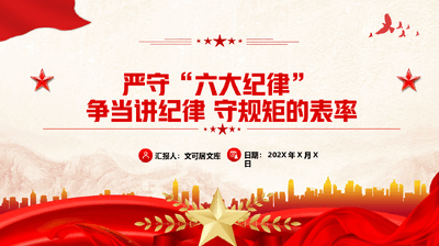 党纪学习专题党课+讲稿—严守六大纪律,争当讲纪律 守规矩的表率.pptx