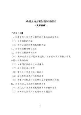 构建支持全面创新体制机制——党课讲稿32页.docx