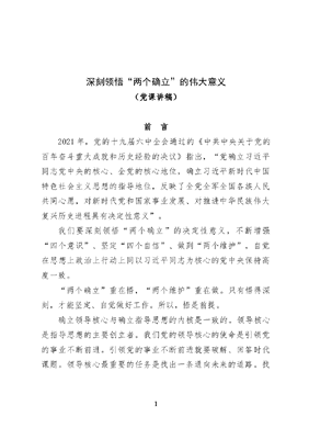 深刻领悟“两个确立”的伟大意义——党课讲稿(17页).docx