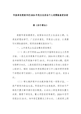 市直单位党组书记2024年民主生活会个人对照检查发言材料(四个带头).docx
