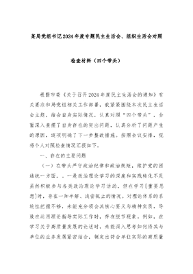 某局党组书记2024年度专题民主生活会、组织生活会对照检查材料(四个带头).docx