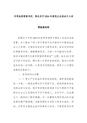 市司法局党委书记、局长关于2024年度民主生活会个人对照检视材料.docx