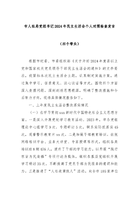 市人社局党组书记2024年民主生活会个人对照检查发言(四个带头).docx