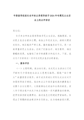 市委指导组组长在市林业局领导班子2024年专题民主生活会上的点评讲话.docx
