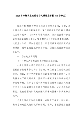 2024年专题民主生活会个人照检查材料(四个带头).docx