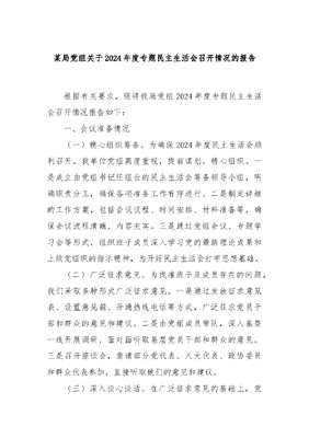 某局党组关于2024年度专题民主生活会召开情况的报告.docx