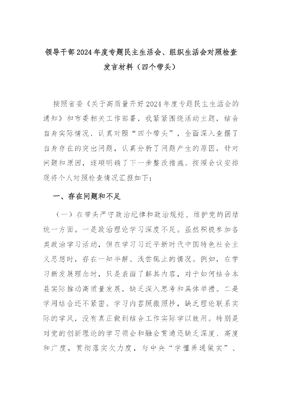 领导干部2024年度专题民主生活会、组织生活会对照检查发言材料(四个带头).docx