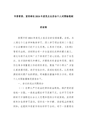 市委常委、宣传部长2024年度民主生活会个人对照检视剖析材料.docx