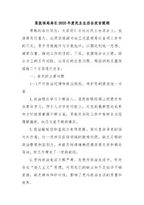 某医保局局长2025年度民主生活会发言提纲 (2).docx