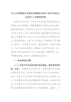 市人大分管教科文卫委和社建委副主任关于2024年度民主生活会个人对照检视材料.docx