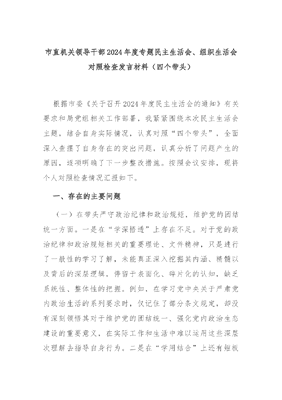 市直机关领导干部2024年度专题民主生活会、组织生活会对照检查发言材料(四个带头).docx