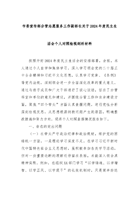 市委宣传部分管志愿服务工作副部长关于2024年度民主生活会个人对照检视剖析材料.docx