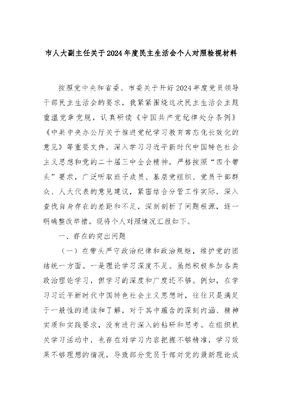 市人大副主任关于2024年度民主生活会个人对照检视材料.docx