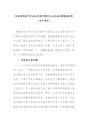 财政局党组书记2024年度专题民主生活会对照检查材料(四个带头).docx