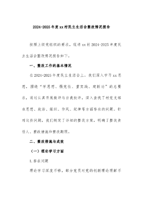 2024 - 2025年度xx村民主生活会整改情况报告.docx