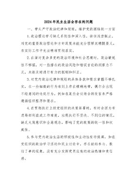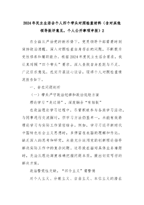 2024 年民主生活会个人四个带头对照检查材料(含对其他领导批评意见,个人公开事项申报)2.docx