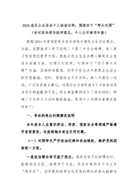 2024底民主生活会个人检查材料,围绕四个“带头对照”(含对其他领导批评意见,个人公开事项申报).docx