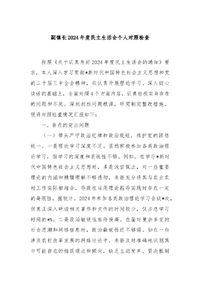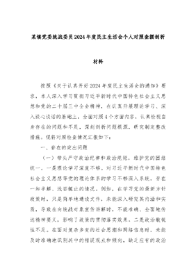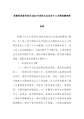 某镇党委宣传委员2024年度民主生活会个人对照查摆剖析材料.docx