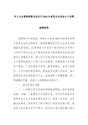 市人大分管财经副主任关于2024年度民主生活会个人对照检视材料.docx