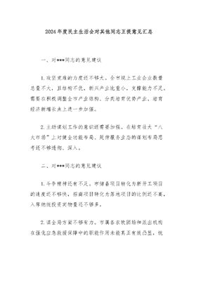 2024年度民主生活会对其他同志互提意见汇总.docx