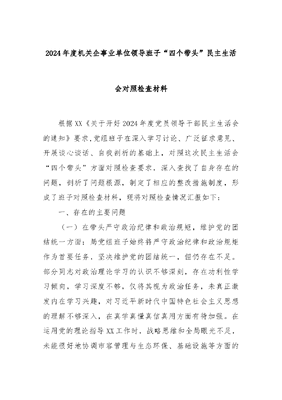 2024年度机关企事业单位领导班子“四个带头”民主生活会对照检查材料.docx