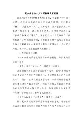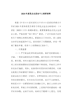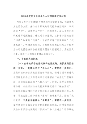 2024年度民主生活会个人剖析材料.docx