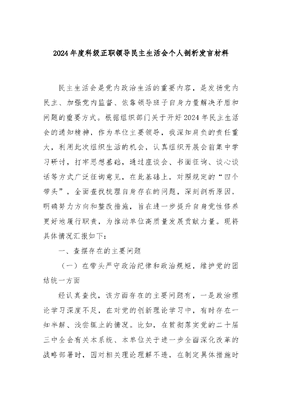 2024年度科级正职领导民主生活会个人剖析发言材料.docx