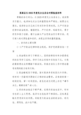 某副县长2025年度民主生活会对照检查材料.docx