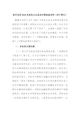 班子成员2024年度民主生活会对照检查材料(四个带头).docx