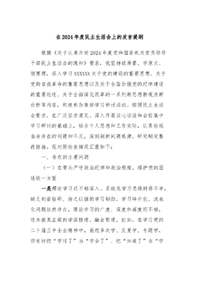 在2024年度民主生活会上的发言提纲.docx