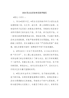 2024民主生活会相互批评意见.docx