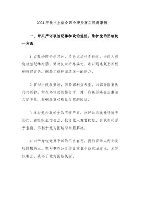 2024年民主生活会四个带头存在问题事例.docx