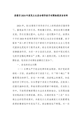 某银行2024年度民主生活会领导班子对照检视发言材料.docx