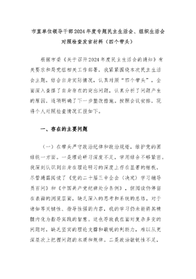 市直单位领导干部2024年度专题民主生活会、组织生活会对照检查发言材料(四个带头).docx