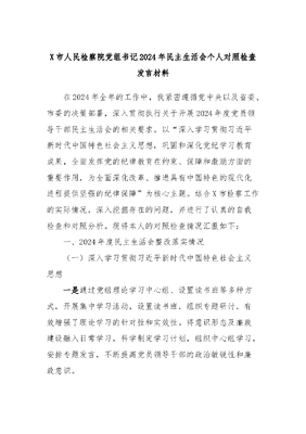 X市人民检察院党组书记2024年民主生活会个人对照检查发言材料.docx