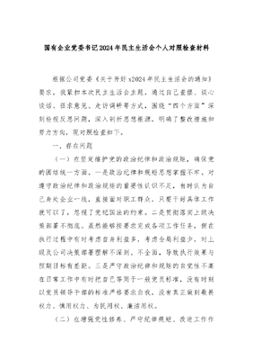 国有企业党委书记2024年民主生活会个人对照检查材料.docx
