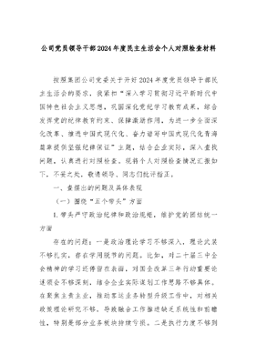 公司党员领导干部2024年度民主生活会个人对照检查材料.docx