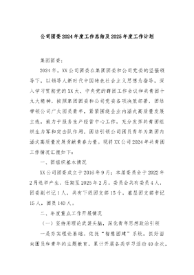 公司团委2024年度工作总结及2025年度工作计划.docx